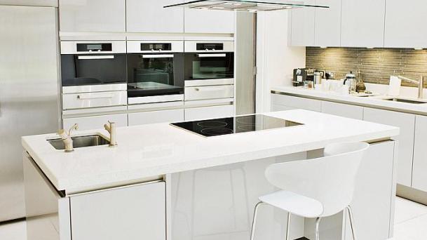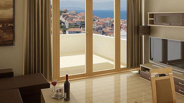 This apartment with nice shades of blue and a beautiful bathroom will help you to relax after work.